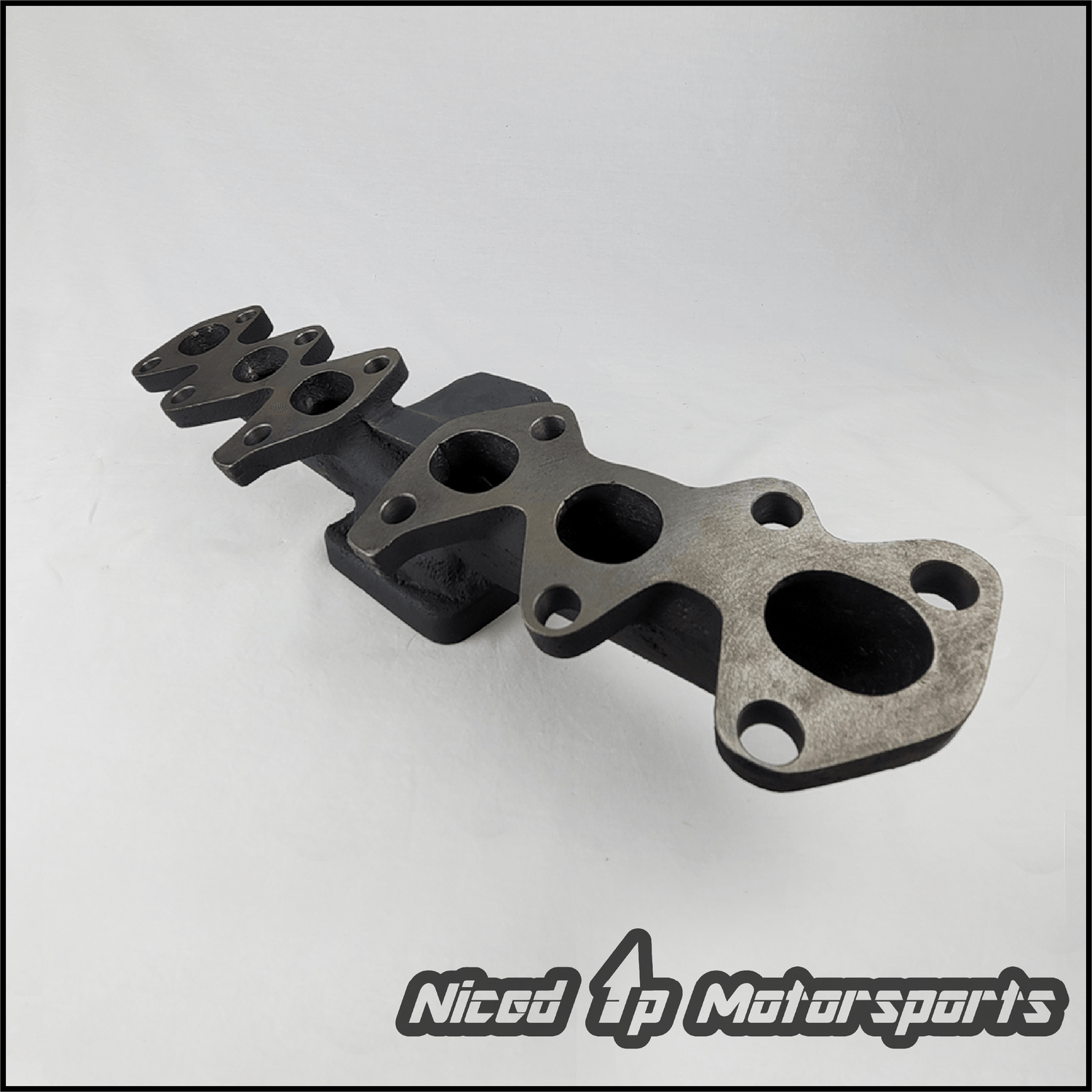 Single turbo conversion manifold for your 2JZ motor. Manifold has a T4 flange for turbos supporting up to 1000hp. For use with tangential V band turbine housings only. Lifetime warranty on cracking!